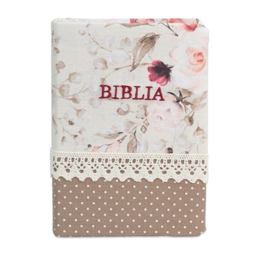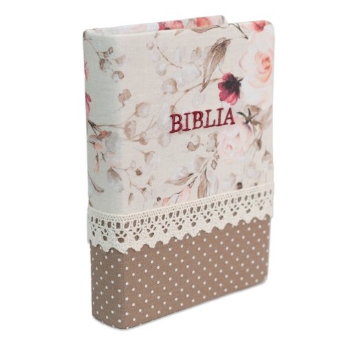 Biblia handmade, marime mica, coperta textila, margini argintii, index, cuv. lui Isus cu rosu, model 4 [SI 047 HM]