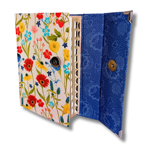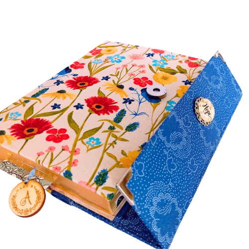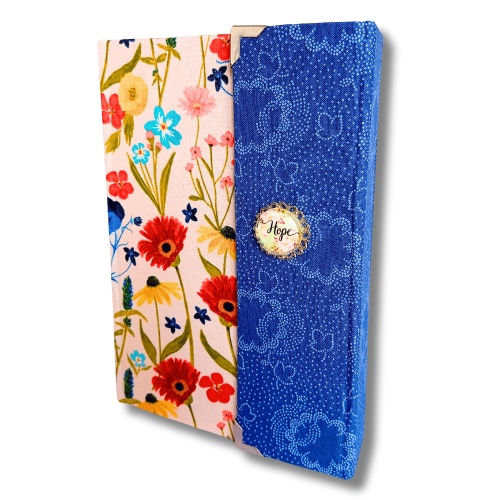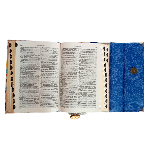 Biblia handmade, model 1, marime medie, inchidere cu clapeta, coperta tare textila, margini aurii, index, cuv. lui Isus cu rosu [SI 057 HM]