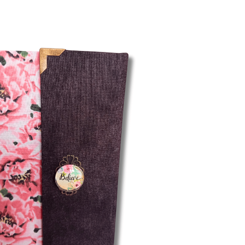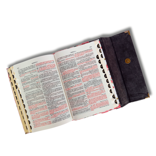 Biblia handmade, model 10, marime medie, inchidere cu clapeta, coperta tare textila, margini aurii, index, cuv. lui Isus cu rosu [SI 057 HM]