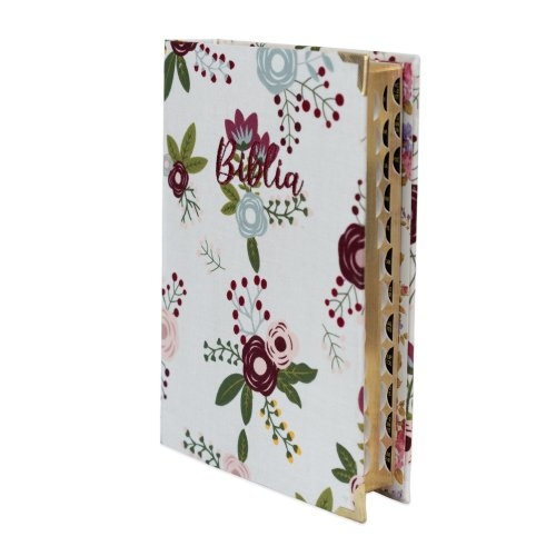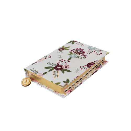 Biblia handmade, model 101, marime medie, coperta tare textila, margini aurii, index, cuv. lui Isus cu rosu [SI 057 HM]