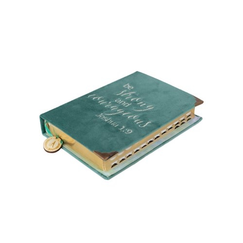 Biblia handmade, model 107, marime medie, coperta tare textila, margini aurii, index, cuv. lui Isus cu rosu [SI 057 HM]