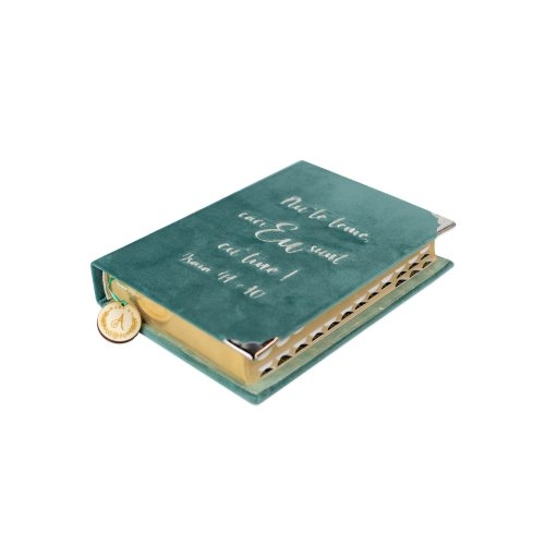 Biblia handmade, model 108, marime medie, coperta tare textila, margini aurii, index, cuv. lui Isus cu rosu [SI 057 HM]