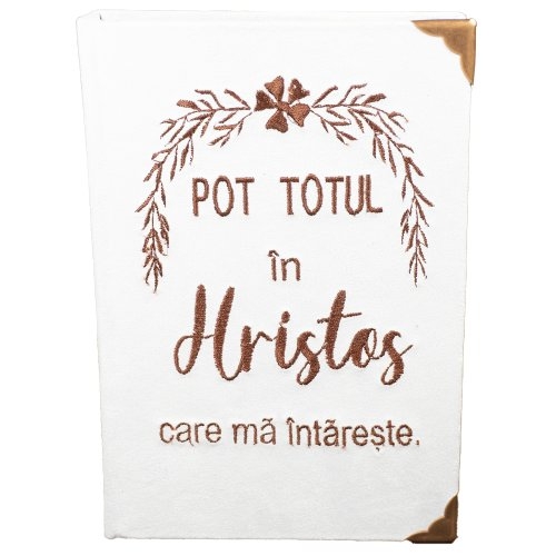 Biblia handmade, model 131, marime medie, coperta tare textila, margini aurii, index, cuv. lui Isus cu rosu [SI 057 HM]