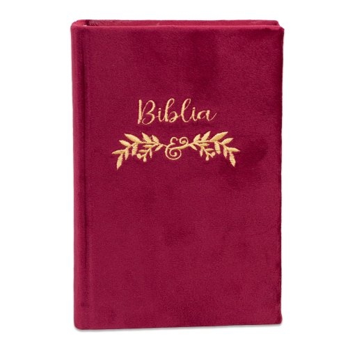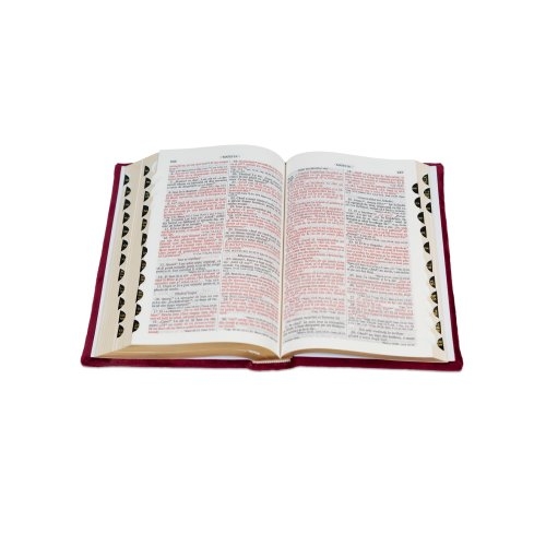 Biblia handmade, model 14, marime medie, coperta tare textila, margini aurii, index, cuv. lui Isus cu rosu [SI 057 HM]
