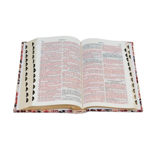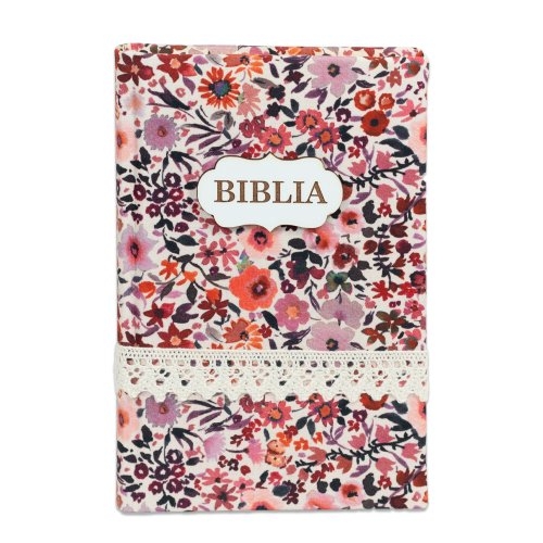 Biblia handmade, model 16, marime medie, coperta tare textila, margini aurii, index, cuv. lui Isus cu rosu [SI 057 HM]