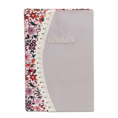 Biblia handmade, model 18, marime medie, coperta tare textila, margini aurii, index, cuv. lui Isus cu rosu [SI 057 HM]
