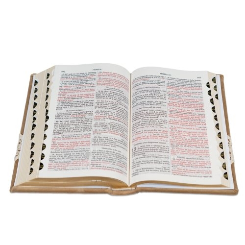 Biblia handmade, model 19, marime medie, coperta tare textila, margini aurii, index, cuv. lui Isus cu rosu [SI 057 HM]