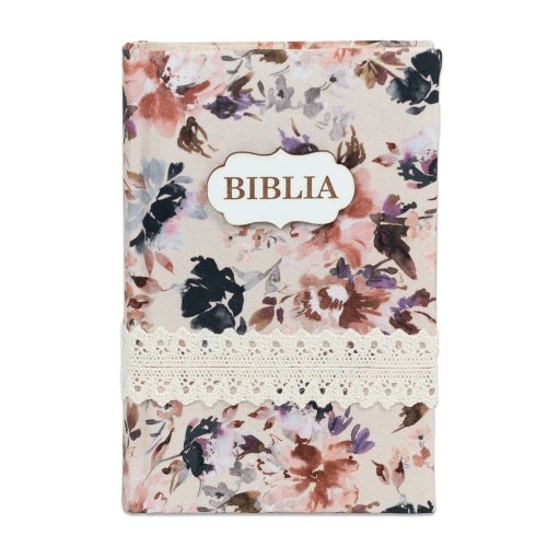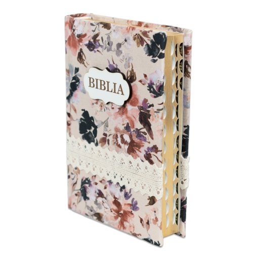 Biblia handmade, model 20, marime medie, coperta tare textila, margini aurii, index, cuv. lui Isus cu rosu [SI 057 HM]