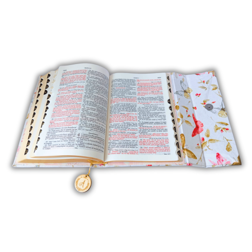 Biblia handmade, model 22, marime medie, inchidere cu clapeta, coperta tare textila, aurita, index [SI 057 HM]