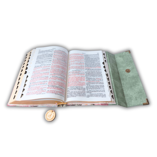 Biblia handmade, model 23, marime medie, inchidere cu clapeta, coperta tare textila, aurita, index [SI 057 HM]