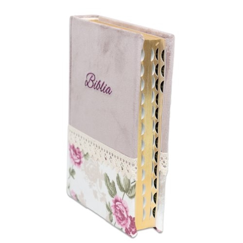 Biblia handmade, model 24, marime medie, coperta tare textila, margini aurii, index, cuv. lui Isus cu rosu [SI 057 HM]