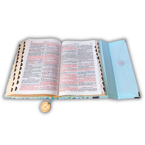 Biblia handmade, model 24, marime medie, inchidere cu clapeta, coperta tare textila, aurita, index [SI 057 HM]
