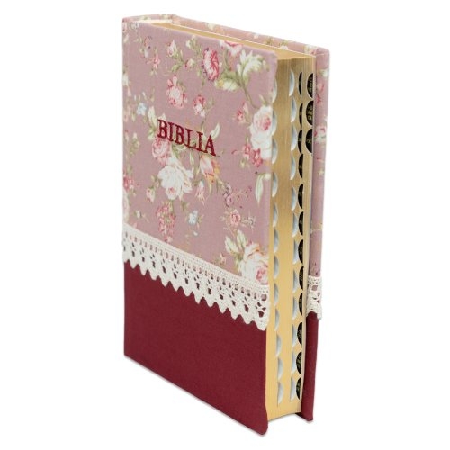 Biblia handmade, model 25, marime medie, coperta tare textila, margini aurii, index, cuv. lui Isus cu rosu [SI 057 HM]