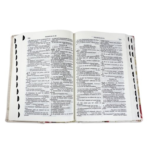 Biblia handmade, model 28, marime medie, coperta flexibila textila, margini albe, index, harti biblice [057 HM]