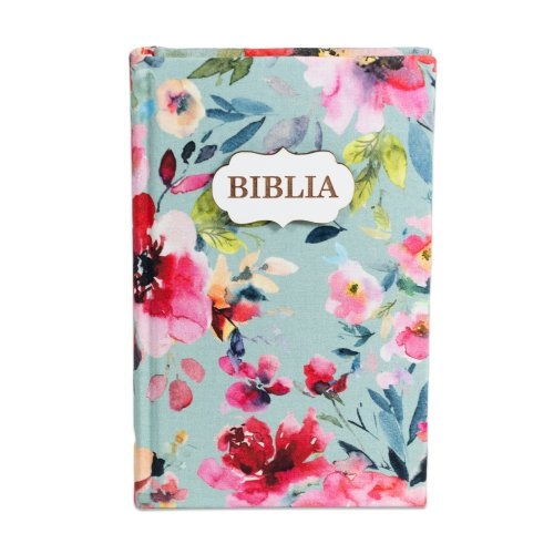 Biblia handmade, model 28, marime medie, coperta tare textila, margini aurii, index, cuv. lui Isus cu rosu [SI 057 HM]