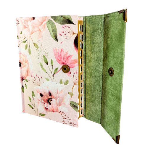 Biblia handmade, model 3, marime medie, inchidere cu clapeta, coperta tare textila, margini aurii, index, cuv. lui Isus cu rosu [SI 057 HM]