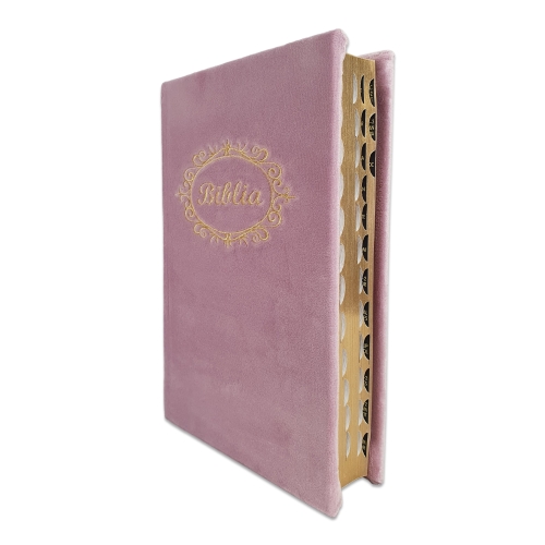 Biblia handmade, model 30, marime medie, coperta tare textila, margini aurii, index, cuv. lui Isus cu rosu [SI 057 HM]