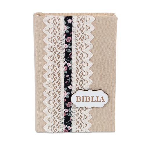 Biblia handmade, model 34, marime medie, coperta tare textila, margini aurii, index, cuv. lui Isus cu rosu [SI 057 HM]
