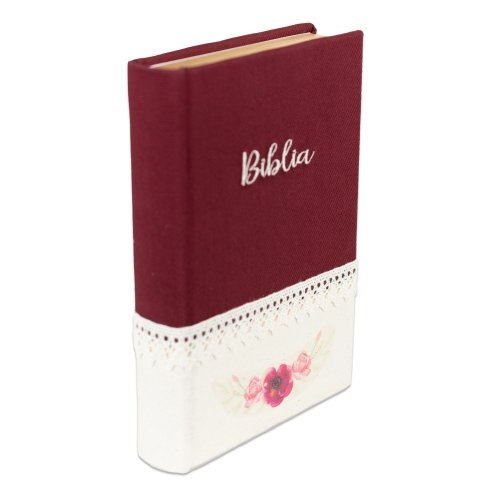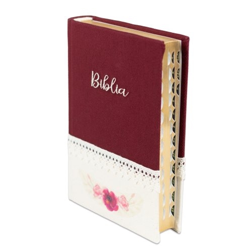 Biblia handmade, model 38, marime medie, coperta tare textila, margini aurii, index, cuv. lui Isus cu rosu [SI 057 HM]