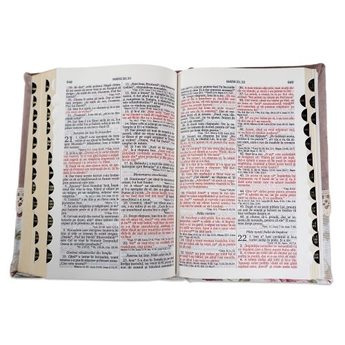 Biblia handmade, model 4, marime medie, coperta tare textila, margini aurii, index, cuv. lui Isus cu rosu [SI 057 HM]