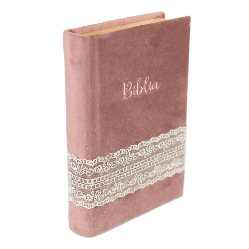 Biblia handmade, model 41, marime medie, coperta tare textila, margini aurii, index, cuv. lui Isus cu rosu [SI 057 HM]