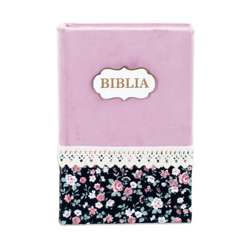 Biblia handmade, model 45, marime medie, coperta tare textila, margini aurii, index, cuv. lui Isus cu rosu [SI 057 HM]