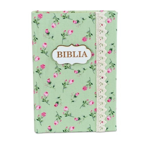 Biblia handmade, model 46, marime medie, coperta tare textila, margini aurii, index, cuv. lui Isus cu rosu [SI 057 HM]