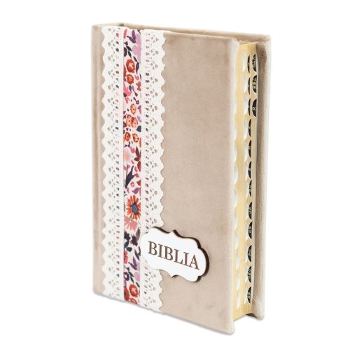Biblia handmade, model 47, marime medie, coperta tare textila, margini aurii, index, cuv. lui Isus cu rosu [SI 057 HM]