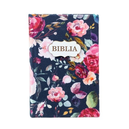 Biblia handmade, model 52, marime medie, coperta tare textila, margini aurii, index, cuv. lui Isus cu rosu [SI 057 HM]