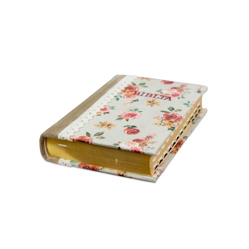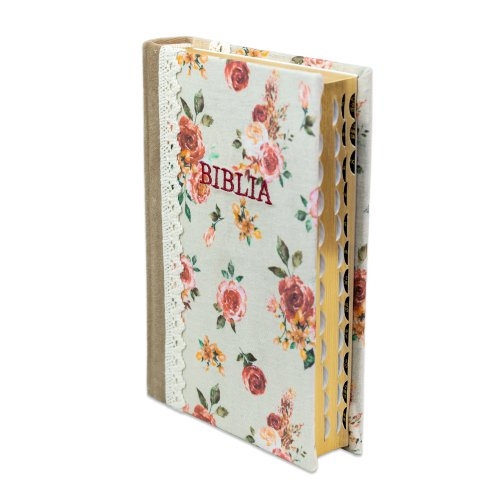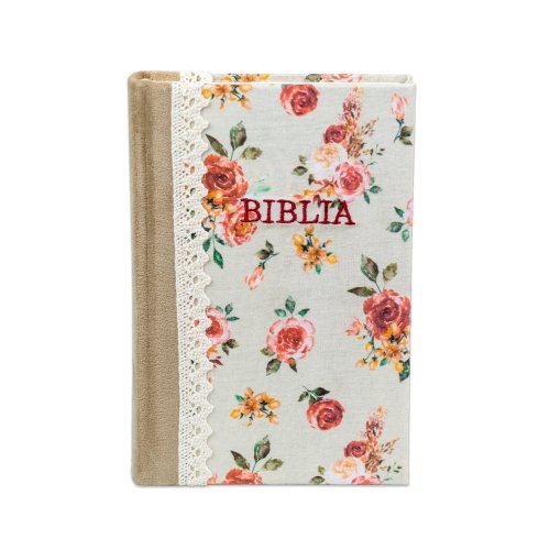 Biblia handmade, model 58, marime medie, coperta tare textila, margini aurii, index, cuv. lui Isus cu rosu [SI 057 HM]