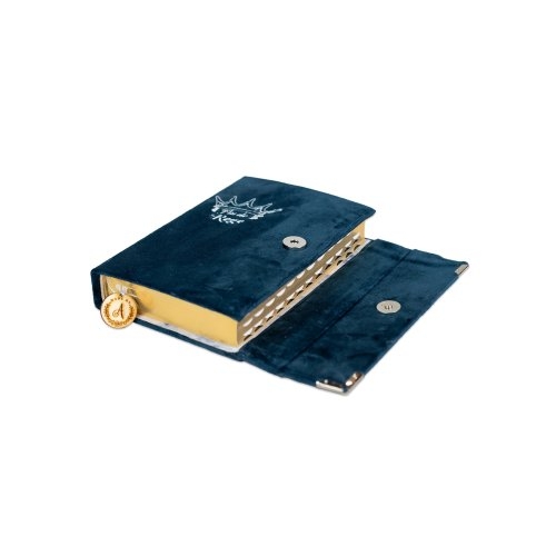 Biblia handmade, model 70, marime medie, inchidere cu clapeta, coperta tare textila, margini aurii, index, cuv. lui Isus cu rosu [SI 057 HM]
