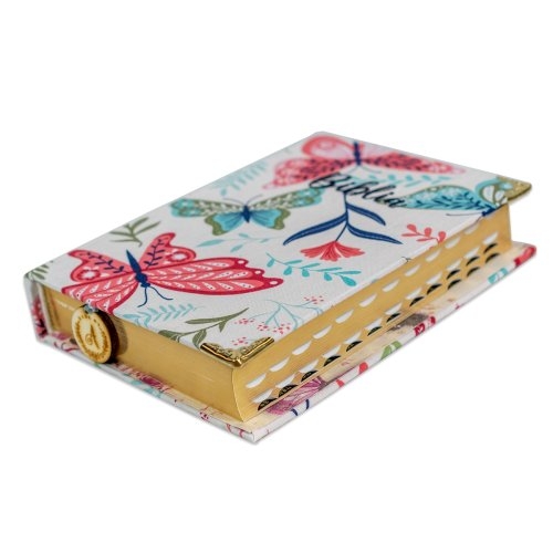 Biblia handmade, model 73, marime medie, coperta tare textila, margini aurii, index, cuv. lui Isus cu rosu [SI 057 HM]