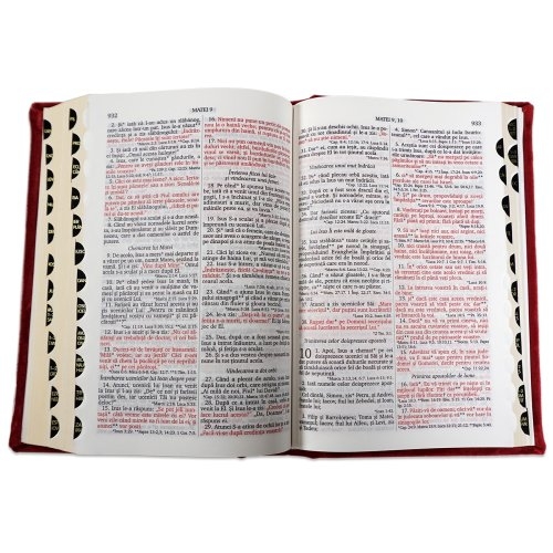 Biblia handmade, model 8, marime medie, coperta tare textila, margini aurii, index, cuv. lui Isus cu rosu [SI 057 HM]
