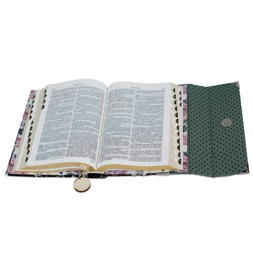 Biblia handmade, model 83, marime medie, inchidere cu clapeta, coperta tare textila, margini aurii, index, cuv. lui Isus cu rosu [SI 057 HM]
