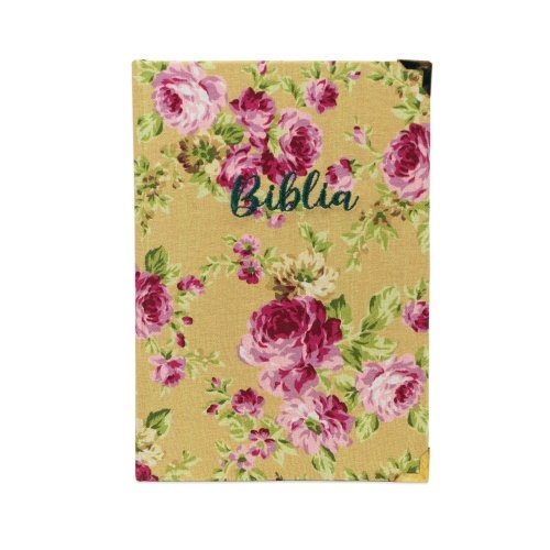 Biblia handmade, model 85, marime medie, coperta tare textila, margini aurii, index, cuv. lui Isus cu rosu [SI 057 HM]