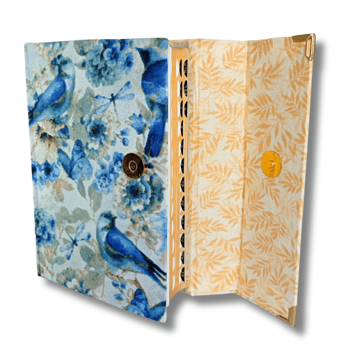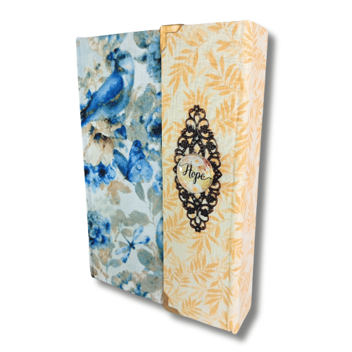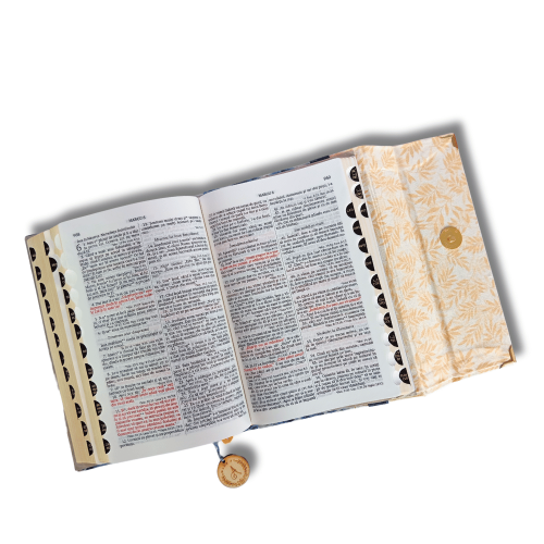 Biblia handmade, model 9, marime medie, inchidere cu clapeta, coperta tare textila, margini aurii, index, cuv. lui Isus cu rosu [SI 057 HM]