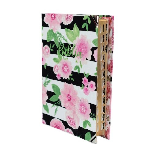 Biblia handmade, model 99, marime medie, coperta tare textila, margini aurii, index, cuv. lui Isus cu rosu [SI 057 HM]