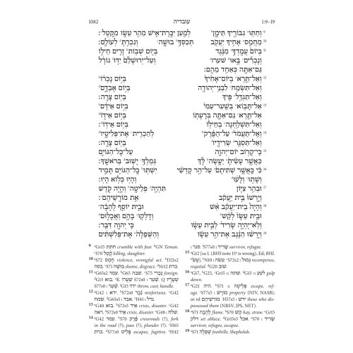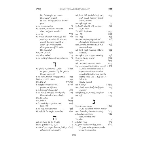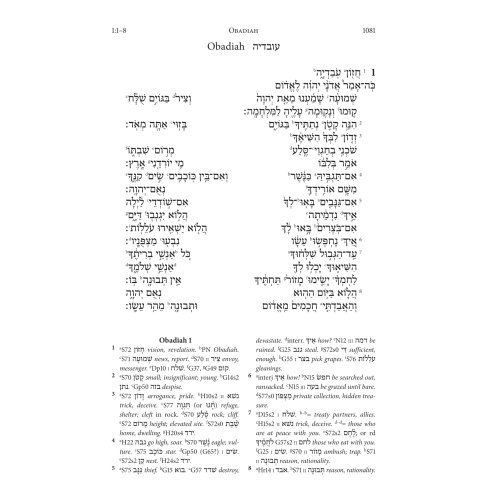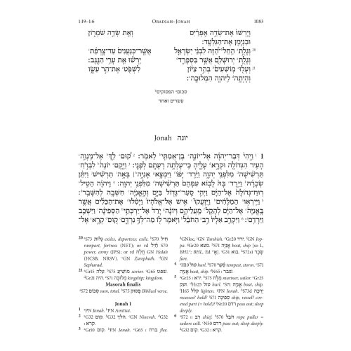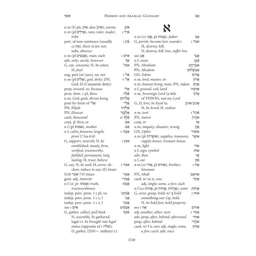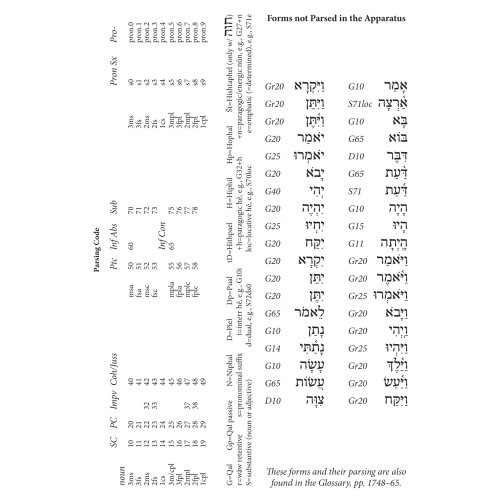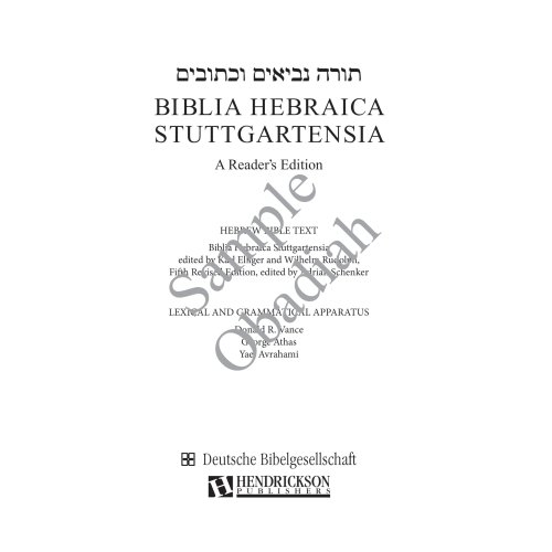 Biblia Hebraica Stuttgartensia (BHS) este cel mai autoritar text ebraic al Vechiului Testament în studiile biblice din întreaga lume. Pentru prima dată, textul BHS este oferit aici într-o ediție foarte ușor de citit. În această ediție, aparatul critic este înlocuit de o rețea densă de instrumente de citire și traducere la subsolul fiecărei pagini: Pentru toate cuvintele ebraice care apar de mai puțin de șaptezeci de ori în întregul text biblic, nu este dat doar sensul cuvântului englezesc ( luând în considerare contextul respectiv), dar determină și cu precizie forma gramaticală prezentă în fiecare caz. În plus, cuvintele ebraice care apar de mai mult de șaptezeci de ori sunt rezumate într-un glosar, care poate fi folosit și pentru învățarea vocabularului de bază. Cu toate aceste ajutoare, puteți face progrese rapide în citirea textului ebraic fără a fi nevoie să parcurgeți lexicul și gramatica.