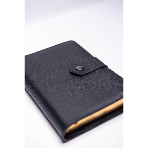 Biblia in husa handmade piele autentica, cu bareta si capsa, marime medie, neagră, index, margini aurii, cuv. lui Isus cu rosu [057 BAR]