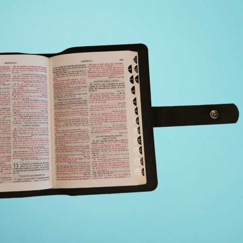 Această Biblie se remarcă și prin marginile aurii și indexul pe margine. Marginile aurii adaugă un aspect nobil și rafinat, iar indexul pe margine facilitează navigarea rapidă prin pagini și identificarea ușoară a pasajelor cheie.