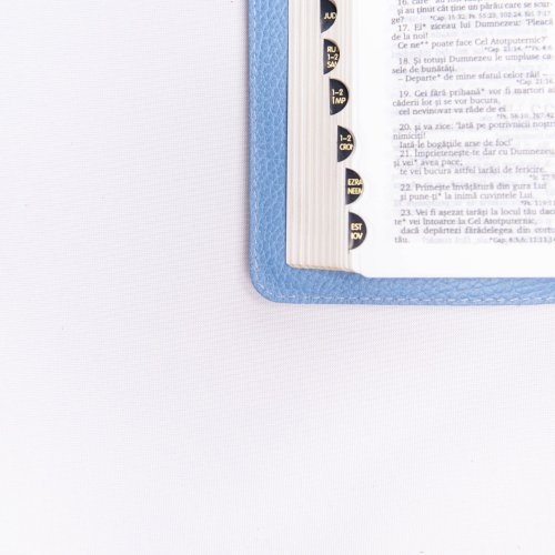 Această Biblie se remarcă și prin marginile aurii și indexul pe margine. Marginile aurii adaugă un aspect nobil și rafinat, iar indexul pe margine facilitează navigarea rapidă prin pagini și identificarea ușoară a pasajelor cheie.