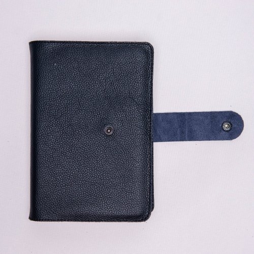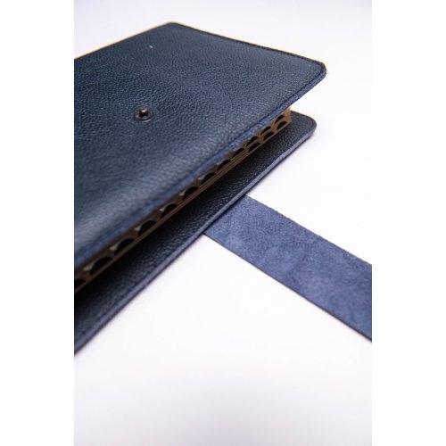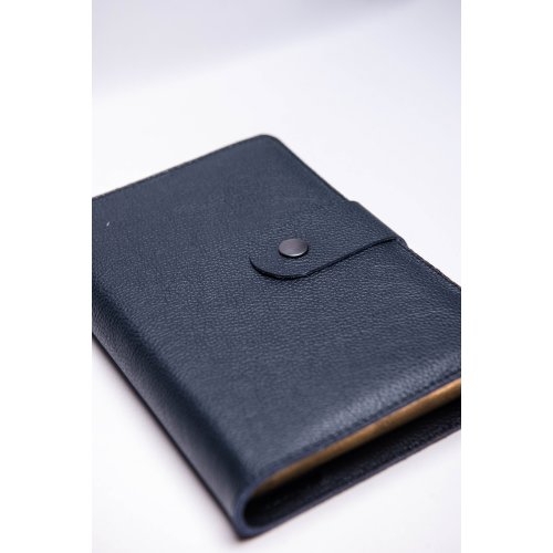 Biblia in husa handmade piele autentica, cu bareta si capsa, marime medie, bleumarin, index, margini aurii, cuv. lui Isus cu rosu [057 BAR]