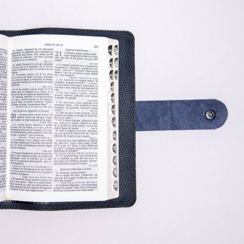 Inchiderea cu bareta și capsă adaugă o notă de eleganță și siguranță acestei Biblii. Bareața asigură protejarea paginilor și menținerea lor în siguranță, în timp ce capsa oferă o închidere precisă și comodă.