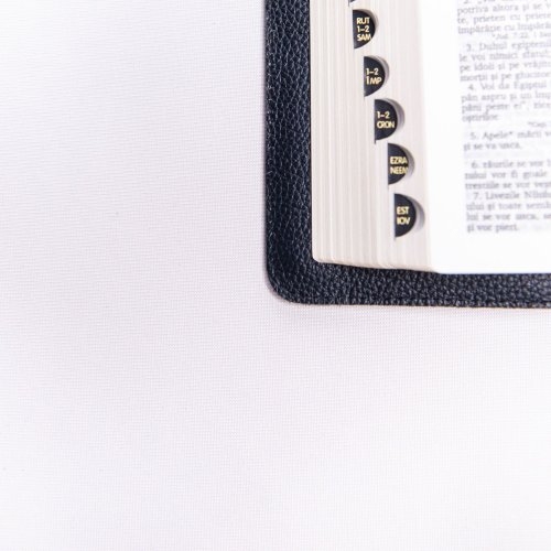 Această Biblie se remarcă și prin marginile aurii și indexul pe margine. Marginile aurii adaugă un aspect nobil și rafinat, iar indexul pe margine facilitează navigarea rapidă prin pagini și identificarea ușoară a pasajelor cheie.