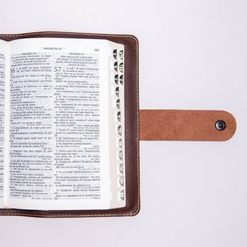 Inchiderea cu bareta și capsă adaugă o notă de eleganță și siguranță acestei Biblii. Bareața asigură protejarea paginilor și menținerea lor în siguranță, în timp ce capsa oferă o închidere precisă și comodă.