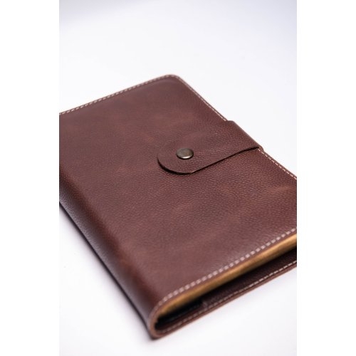 Biblia in husa handmade piele autentica, cu bareta si capsa, marime medie, brown, index, margini aurii, cuv. lui Isus cu rosu [057 BAR]