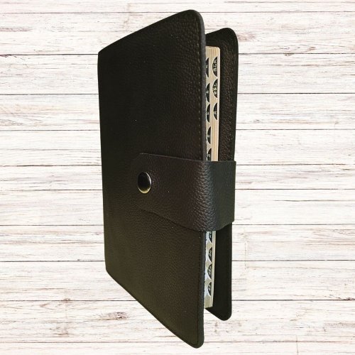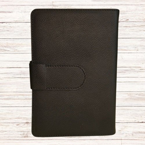 Biblia in husa handmade piele autentica, cu bareta si capsa, marime medie, neagra, index, margini aurii, cuv. lui Isus cu rosu [057 HBS]