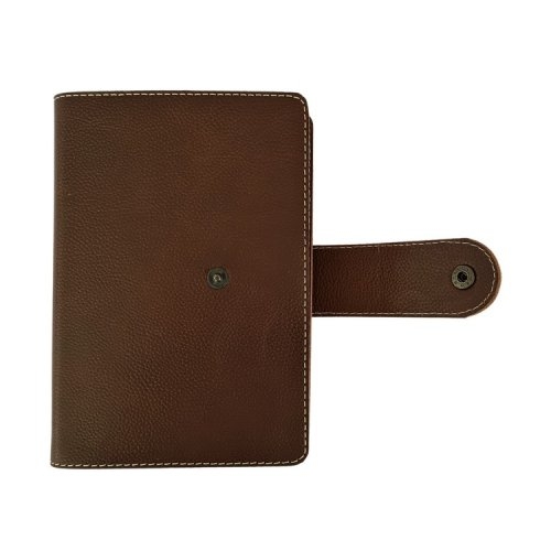 Biblia in husa handmade piele autentica, cu bareta si capsa, marime medie, maro, index, margini aurii, cuv. lui Isus cu rosu [057 BAR]