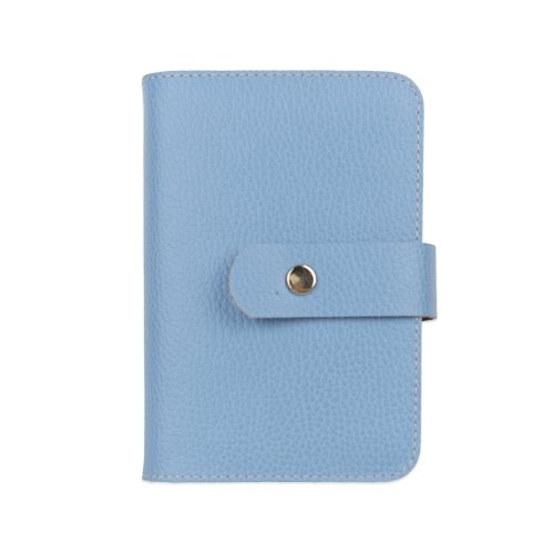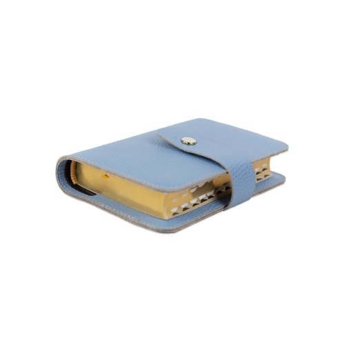 Biblia in husa handmade piele autentica, cu bareta si capsa, marime mica, bleu ciel, index, margini aurii, cuv. lui Isus cu rosu [047 HBC]