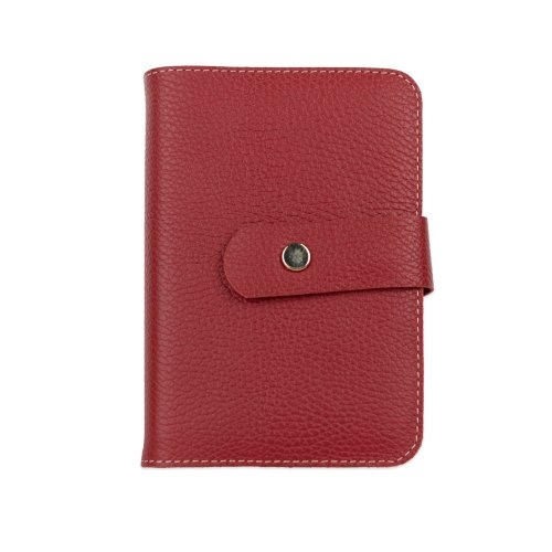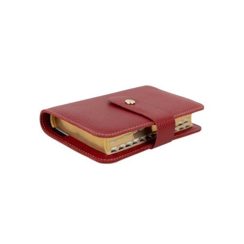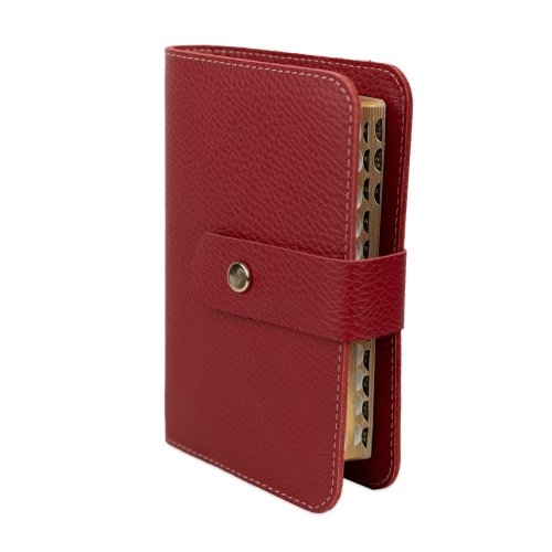 Biblia in husa handmade piele autentica, cu bareta si capsa, marime mica, roșie, index, margini aurii, cuv. lui Isus cu rosu [047 HBC]